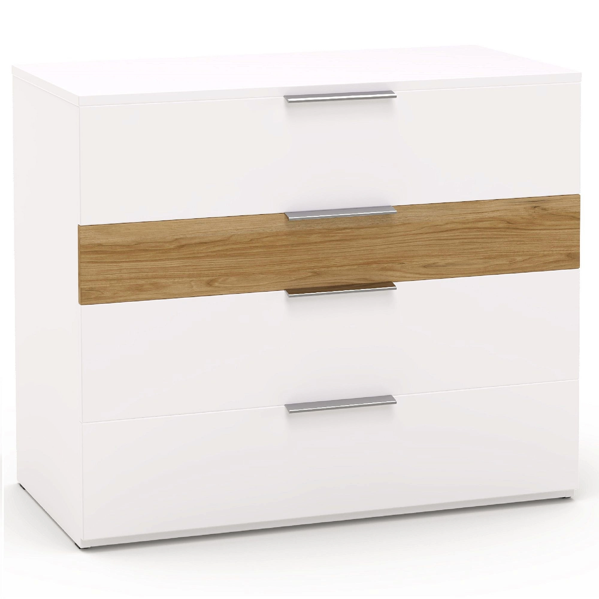 Описание: Комод с четырьмя ящиками навсегда избавит вас от утренних поисков белья и носков. Комод гармонично сочетается с навесным зеркалом и другими изделиями данной коллекции, создавая единую стилистическую композицию, или может использоваться как самостоятельный элемент интерьера. Малый ящик удобен для хранения аксессуаров и мелочей, а в трех широких ящиках сложенная одежда и белье всегда будут в порядке и под рукой. Выдвигая утром ящики, вы не нарушите сон своих близких, т.к. ящики оснащены направляющими с доводчиками с функцией плавного и бесшумного открывания/закрывания. Столешница и белые фасады комода МДФ в отделке 3D пленка ПВХ (производство Германия). Модная поверхность Perfect Touch с имитацией мягкой матовой лакированной кожи. Теплый, приятный на ощупь материал с улучшенными техническими свойствами.